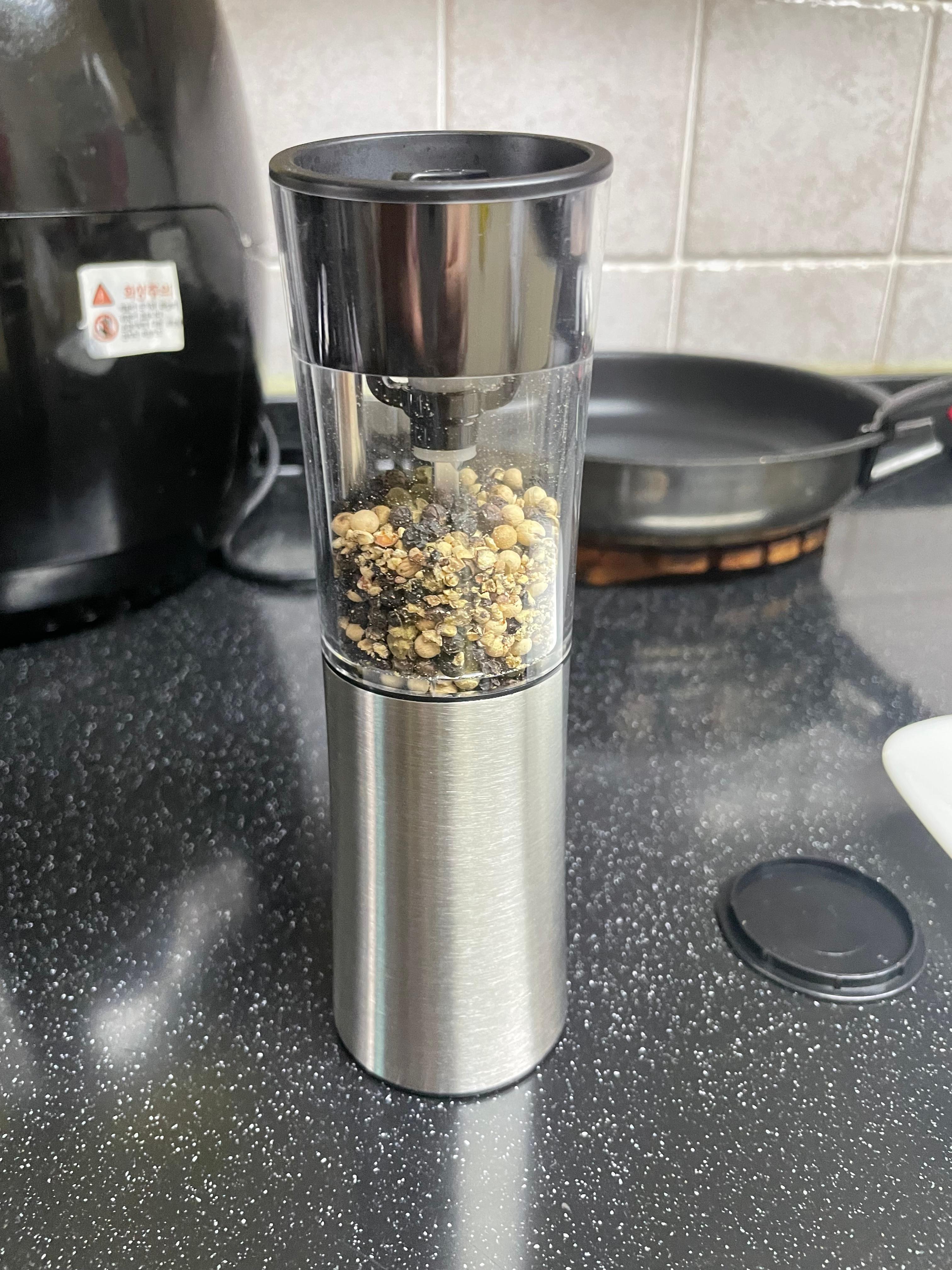 요리에 관심 있는 사람이라면 TV나 유튜브에서 셰프들이 전동 그라인더를 쓰는 모습을 많이 봤을것. 확실히 수동으로 돌리는 것보다 뭔가 있어 보이고, 후추가 더 맛있을 것 같은 느낌적인 느낌이 있다.