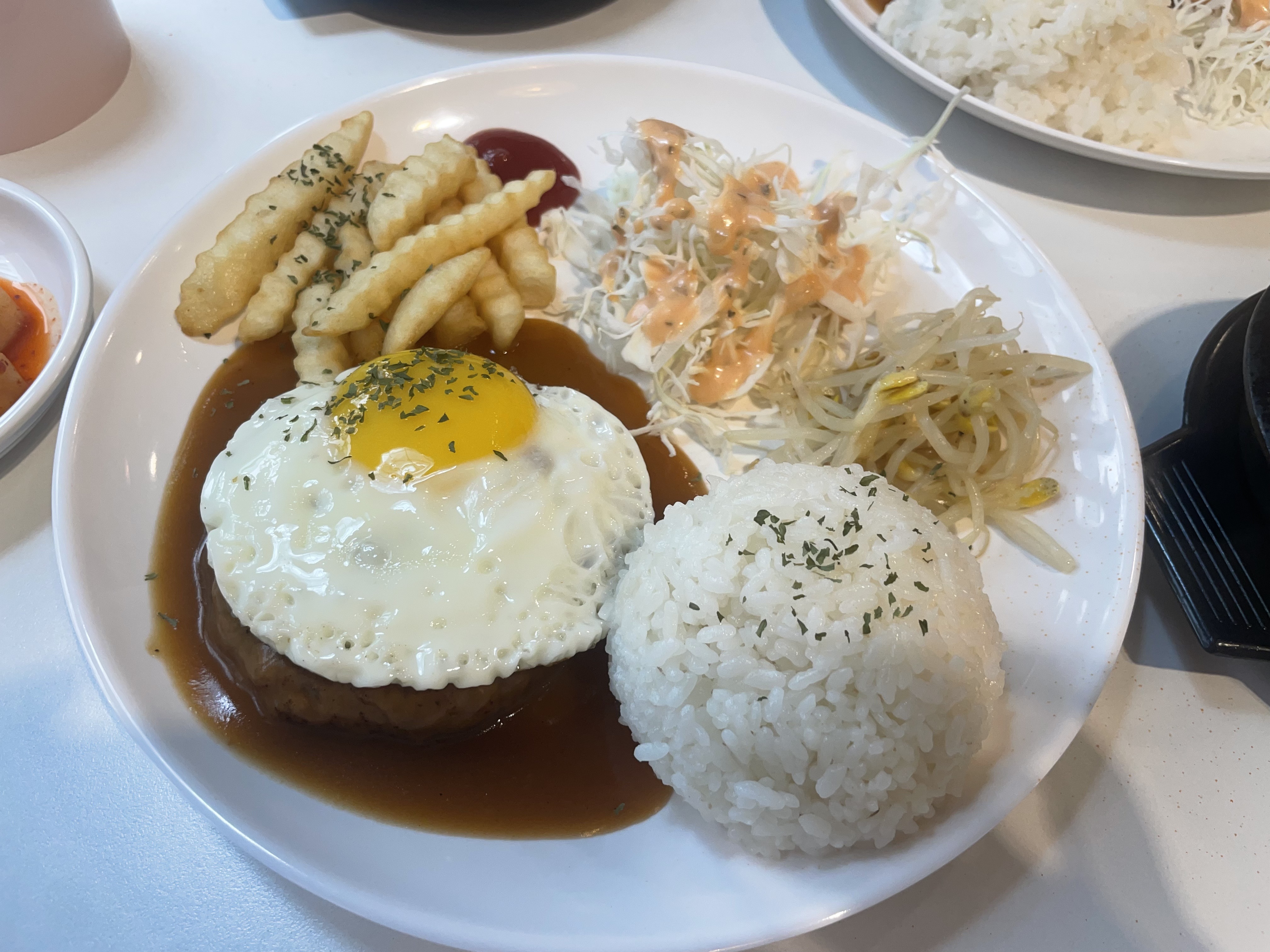 돈가스 소스가 내 입맛에는 다소 느끼하고 달게 느껴졌다. 바삭한 돈가스 튀김 자체는 괜찮았을지 모르지만, 소스가 튀김의 맛을 덮어버리는 느낌이 강했다. 함박스테이크 역시 마찬가지였다. 첫 한입에 대한 실망감이 너무 컸다.