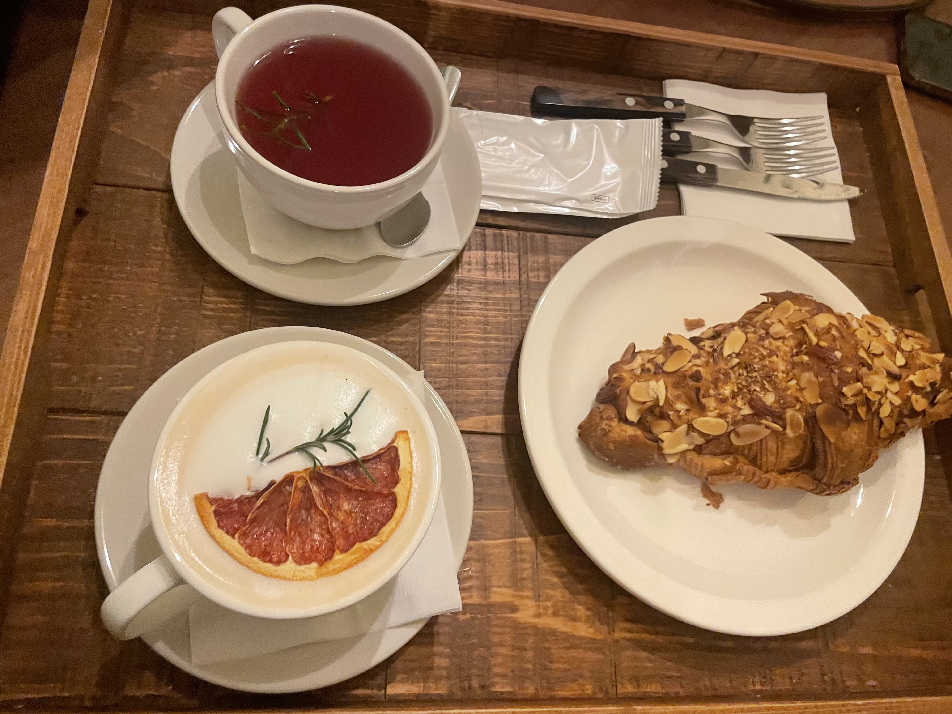 우리는 밀크티와 애플티, 그리고 남은 빵 중 초코 크로와상을 주문했다.